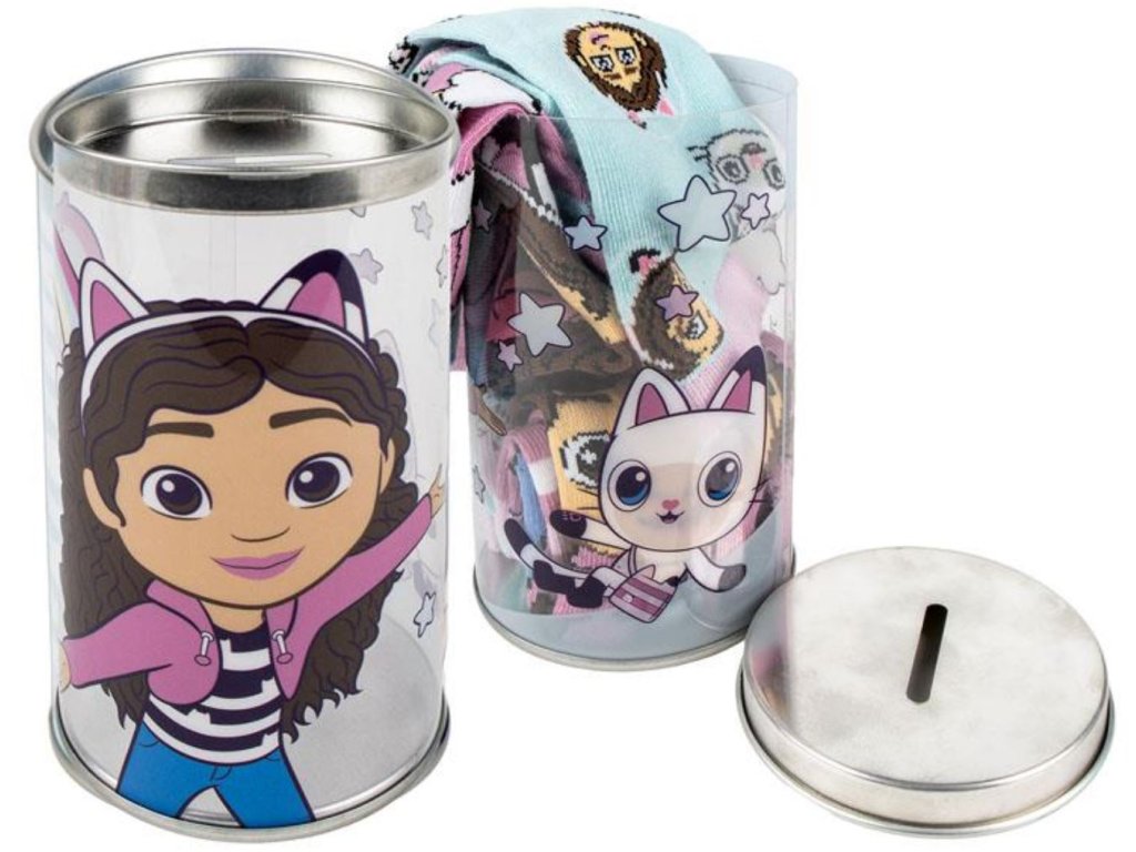 Balení 4 párů kvalitních vícebarevných dětských ponožek s grafikou postavy milé Gábby a její kočky. Ponožky jsou zabaleny v dárkové dóze, kterou lze používat jako pokladničku. Tento dárkový set rozhodně potěší každého menšího fanouška této oblíbené pohádky.