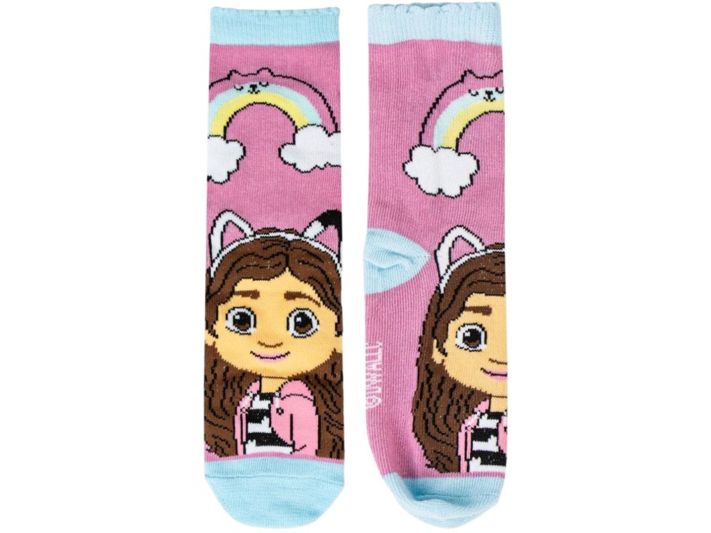 Oficiální produkt - set dětských ponožek z doplňkového a fashion zboží z katalogu produktů s logem, grafikou a fotografiemi Gabby's dollhouse (Gábinin kouzelný domek) od streamovací televize Netflix.