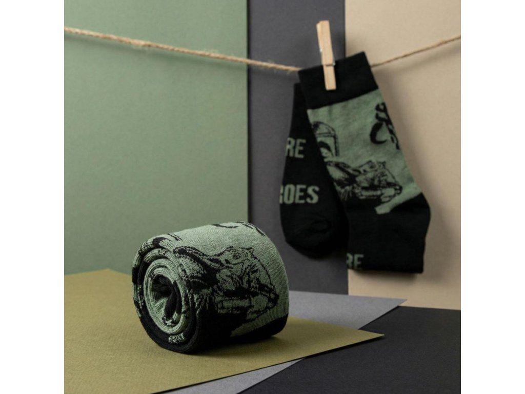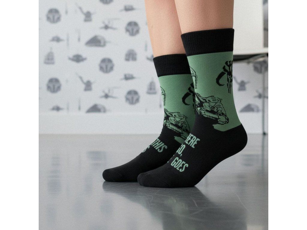 Kvalitní pánské ponožky s licencovaným motivem filmové ságy Star Wars. Doplňte svou sbírku o verzi v barvách The Mandalorian. Tyto ponožky kombinují černou se stylovou šalvějově zelenou a nesou grafiku legendárního "Baby Yody", mandalorianské helmy a mýtozavra. Ponožky vynikají precizním zpracováním a vysokým komfortem díky pružnému materiálu, který se přizpůsobí noze. Ideální pro ty, kteří preferují modernější éru Hvězdných válek.
