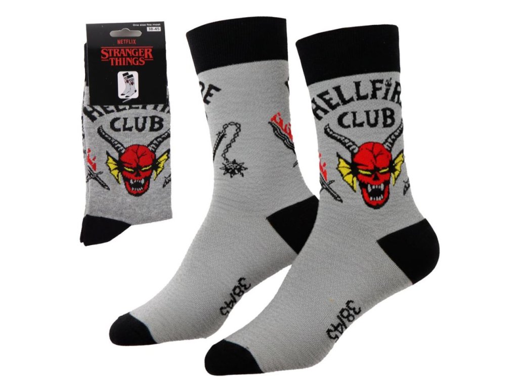 Vysoké ponožky v designu Stranger Things potěší každého fanouška tohoto kultovního seriálu. Šedé ponožky zdobí logo Hellfire Clubu. Ideální jako dárek nebo sběratelský kousek.