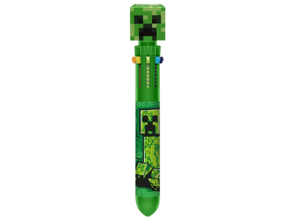 Vícebarevná plastová propiska s 10 barevnou tuží a designem vyvedeným podle akční postavy Creepera ze hry Minecraft. Propiska je vyrobena z lehkého plastového materiálu s jednoduchým systémem na rychlou výměnu barvy tuhy. Jednoduše si zakliknete barvu, kterou chcete psát, nebo kreslit. Propiska je i vhodným drobným dárkem pro všechny fanoušky akčního superhrdiny Spiderman.
