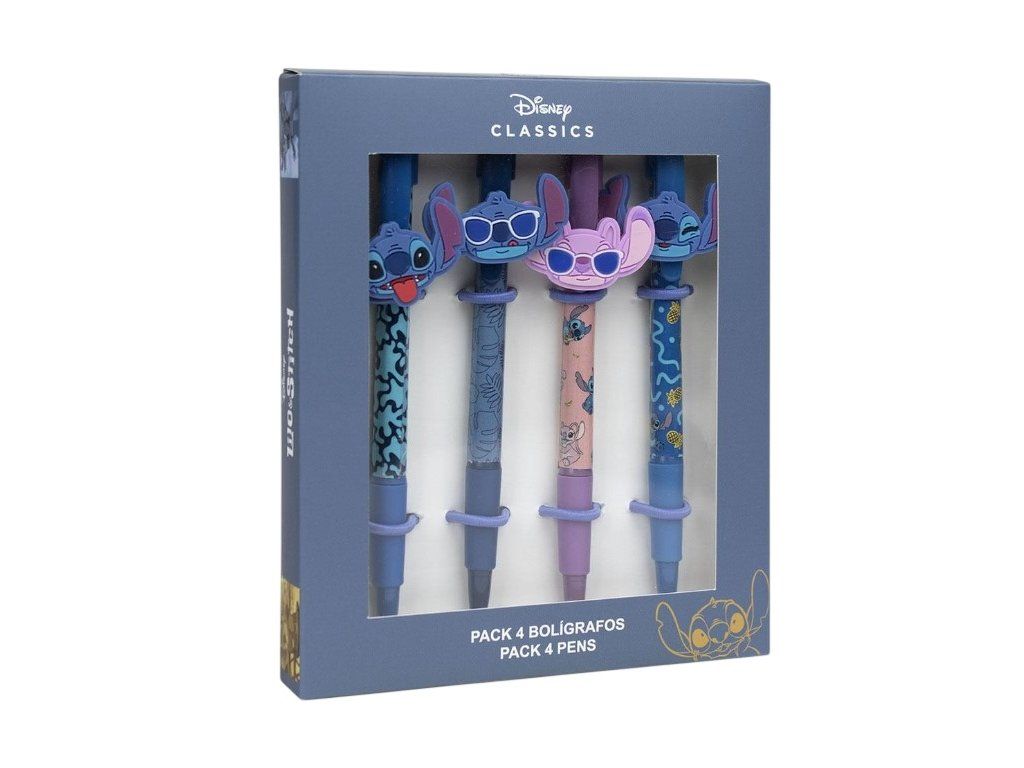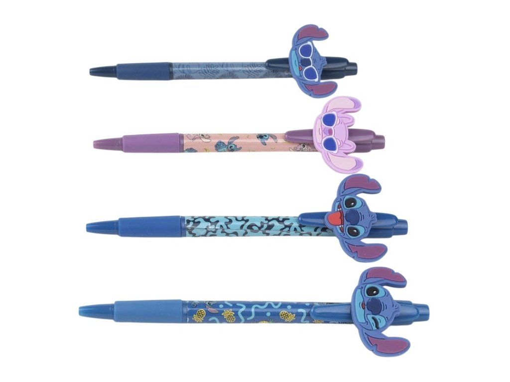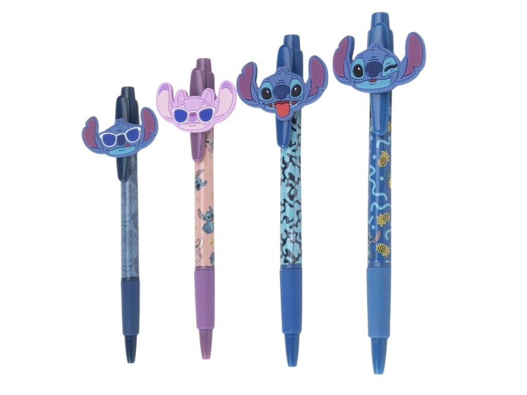 Set 4 kusů různě barevných propisek s motivy Stitche. Každá propiska má jinou barevnou grafiku a je zakončena ozdobnou figurkou Stitche, která dodává psaní hravý a originální styl. Set je skvělým doplňkem do školy, kanceláře nebo jako milý dárek pro všechny fanoušky tohoto roztomilého mimozemšťana.