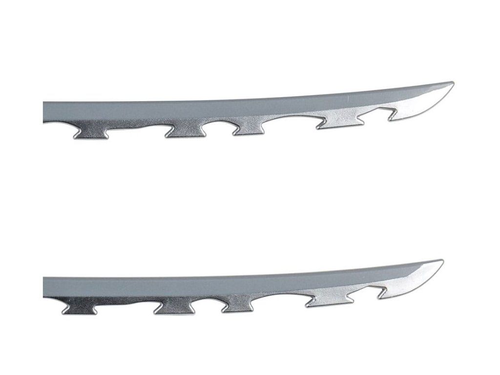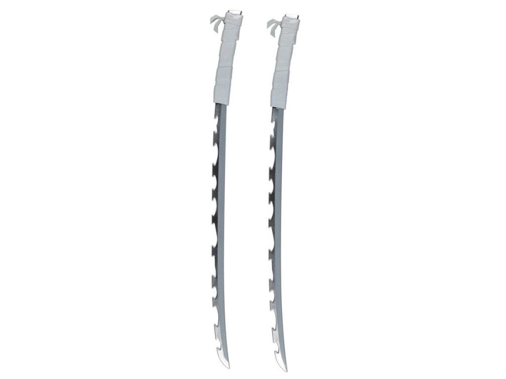 Set dvou Nichirin mečů, které patří Inosukemu Hashibirovi, jedné z nejvýraznějších postav anime Demon Slayer (Kimetsu no Yaiba). Tyto meče jsou unikátní svou zubatou čepelí, kterou si Inosuke sám upravuje pomocí kamene, aby připomínala tesáky divokého prasete.