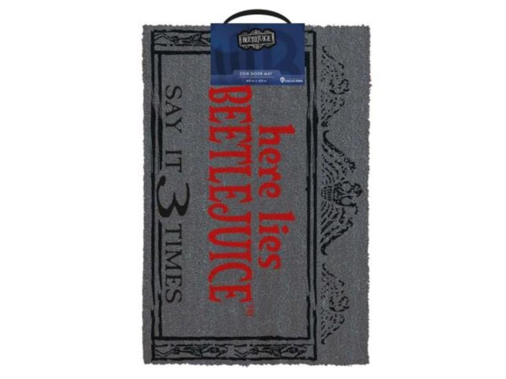 Rohožka s atraktivním vzhledem a nápisem Here lies Beetlejuice. Say it 3 times. Tato zajívavá rozhožka dodá vaším hlavním dvěří kousek tajemna a je vhodná pro každého fanouška šílence Beetlejuice.