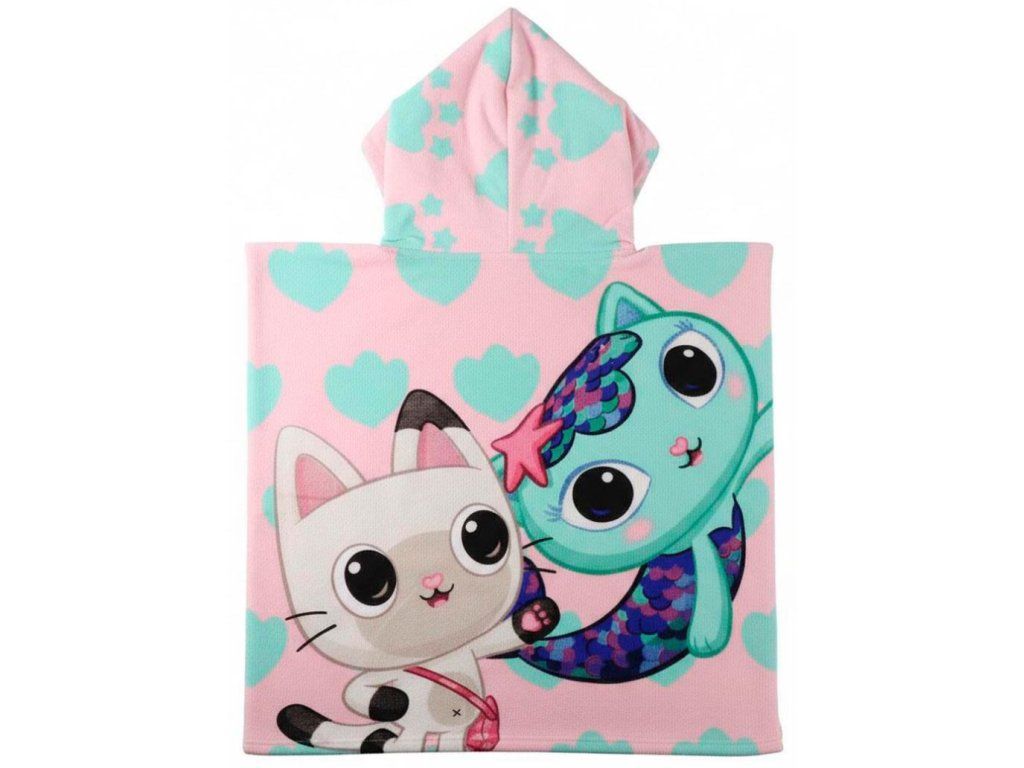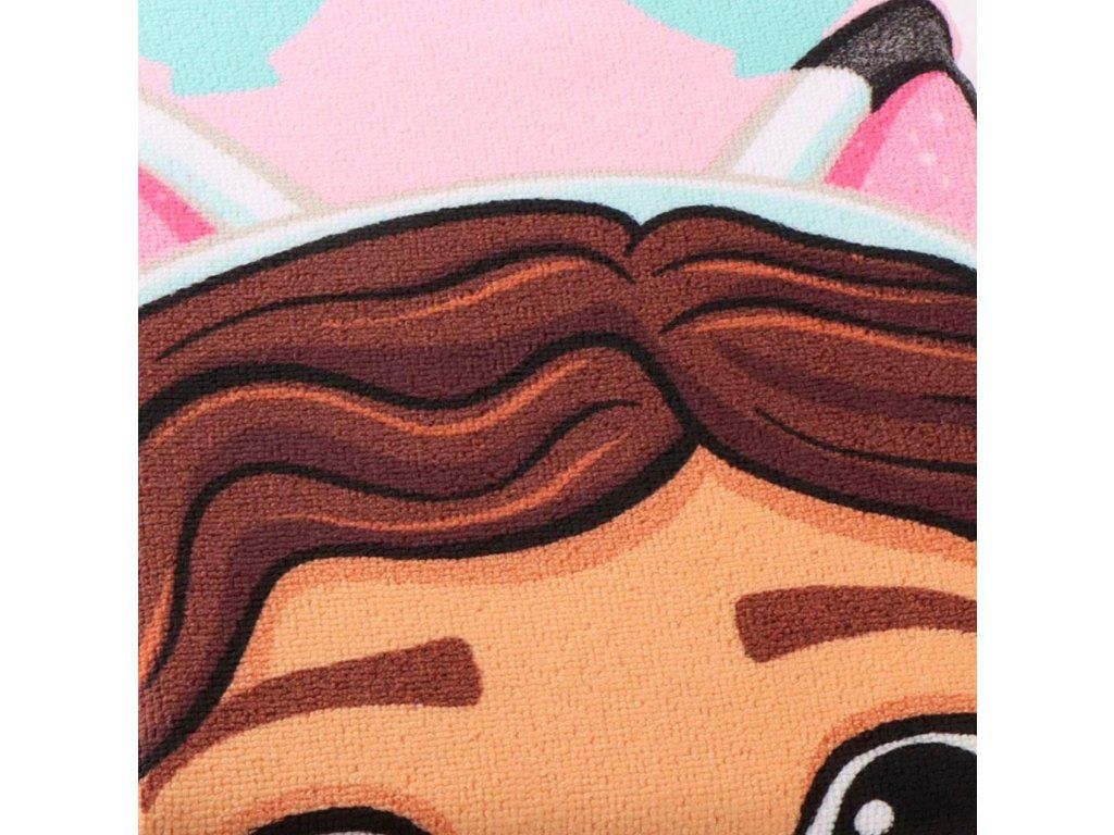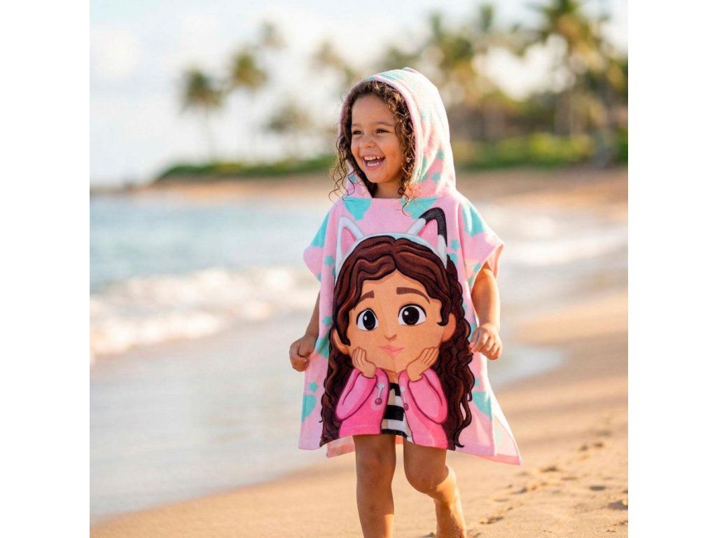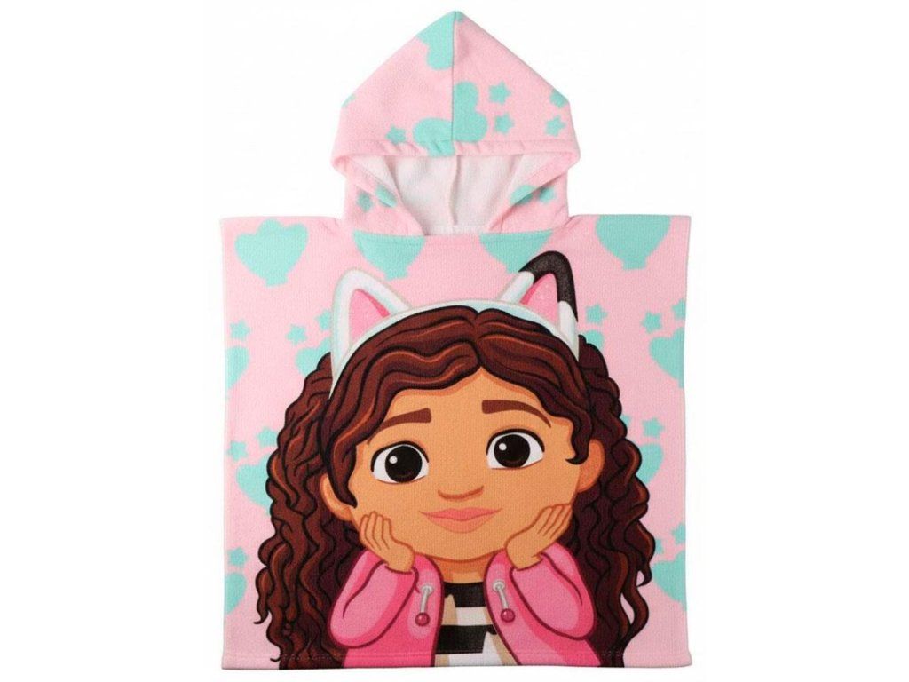 Oficiální produkt - dětský ručník-pončo z katalogu dárkových výrobků s grafikou a licencí populárního seriálu Gabby's Dollhouse.