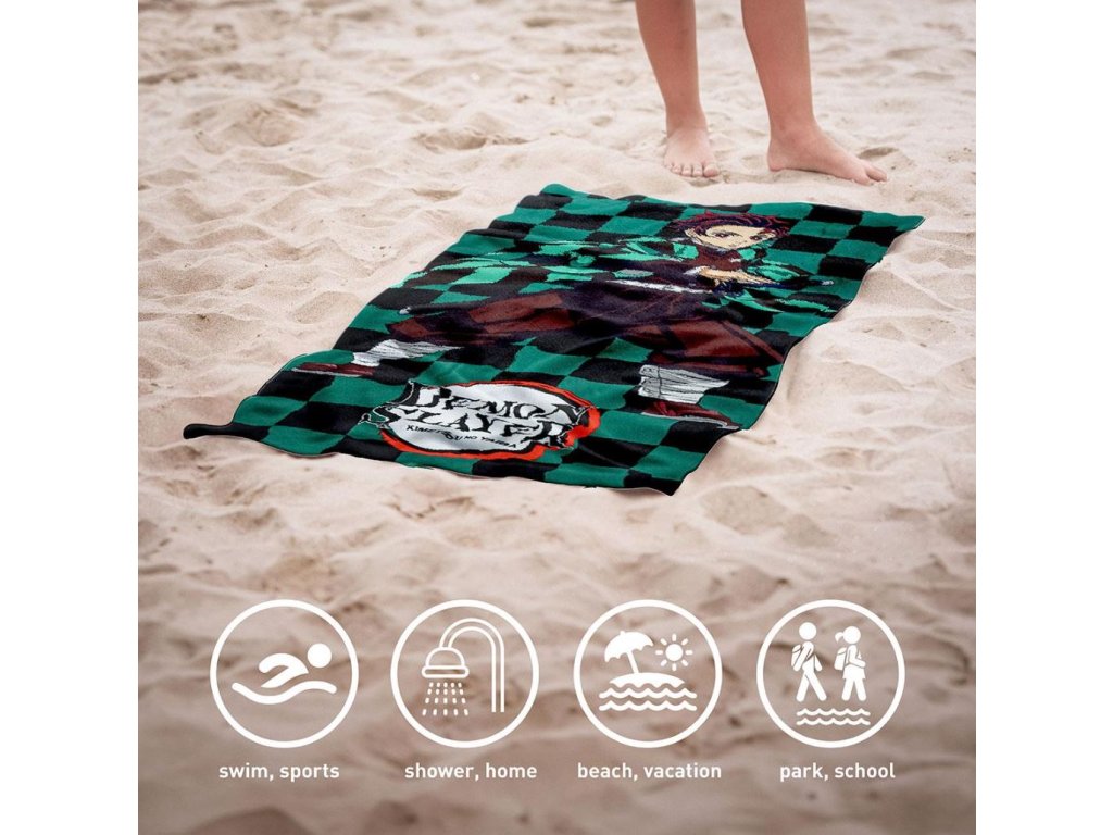 Velká polyesterová zelená osuška s grafikou postavy Kimetsu No Yaiba z komiksové a filmové ságy Demon Slayer. Kvalitní osuška, která se hodí jak na pláž, tak do koupelny. Osuška vhodná pro všechny věrné fanoušky japonské mangy Demon Slayer.