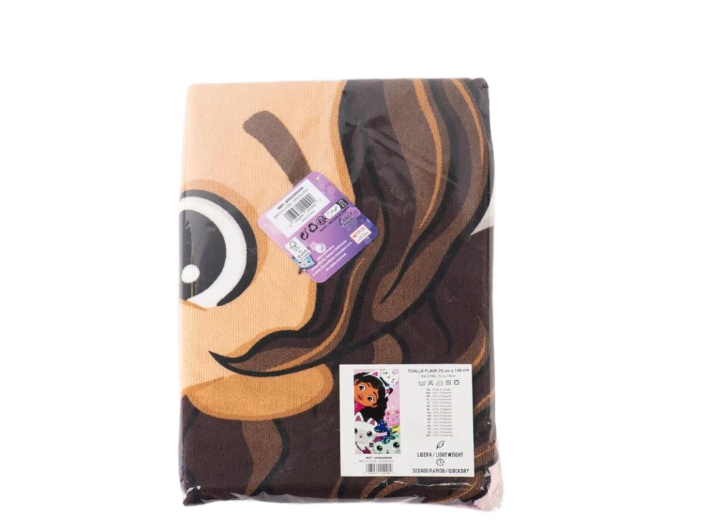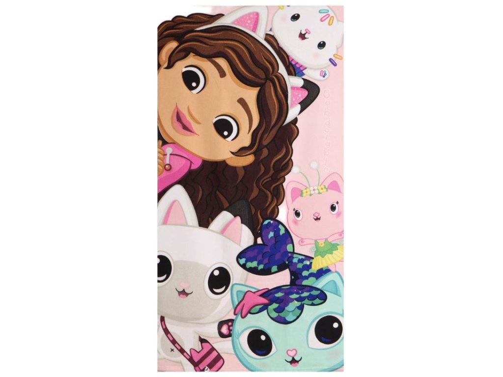 Oficiální produkt - dětská osuška z katalogu výrobků s grafikou, fotografiemi a licencí dětského animovaného seriálu Gabby's Dollhouse.