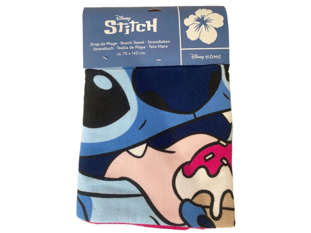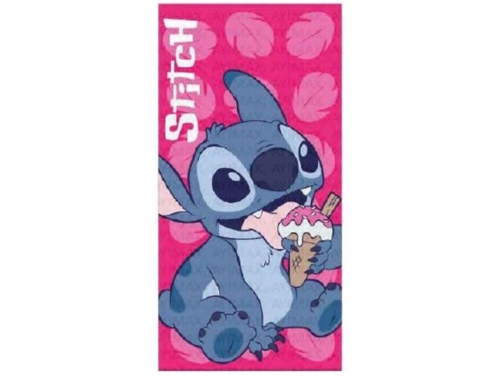 Atraktivní ručník růžové barvy s motivem Stitche jak líže zmrzlinu. Licenční osuška potěší všechny malé i velké milovníky pohádky Lilo a Stitch a především fanoušky postavičky mimozemšťana Stitche.