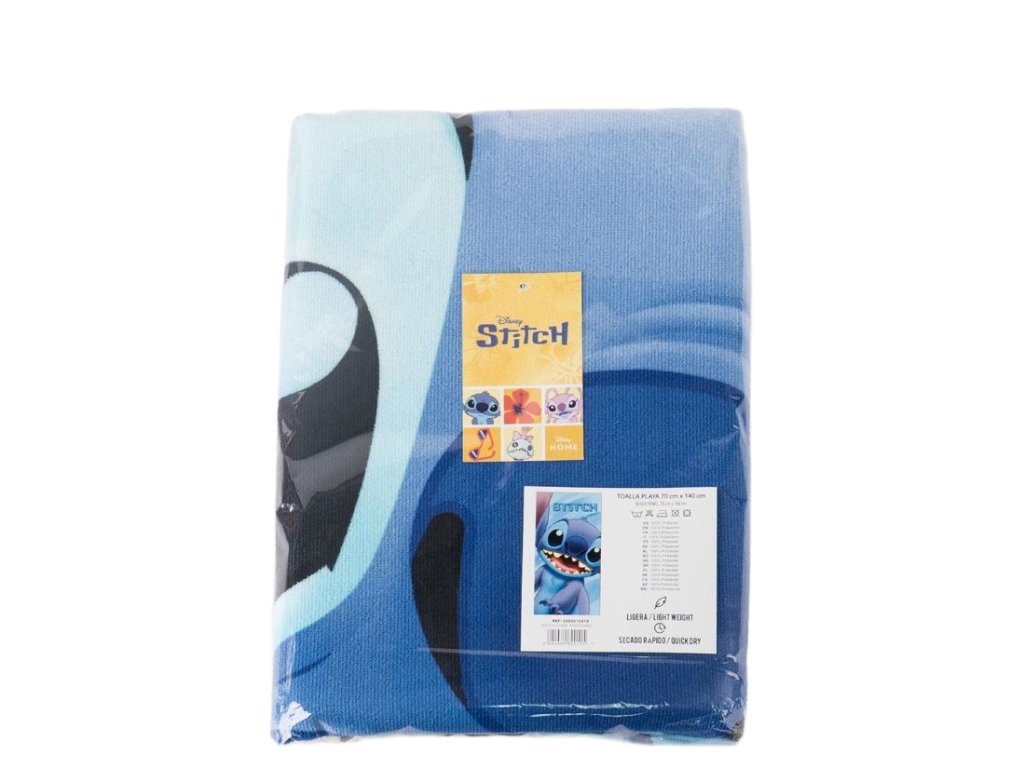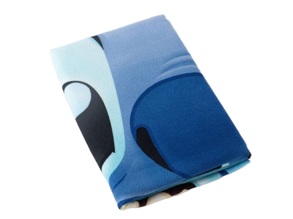 Atraktivní modrý ručník s grafikou mimozemšťana Stitche z kreslené pohádky Lilo & Stitch. Kvalitní ručník hodící se jak na pláž, tak do koupelny každému fanouškovi této roztomilé postavičky.