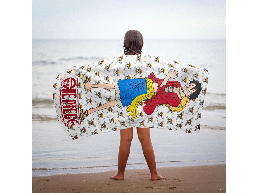 Oficiální produkt - ručník/osuška z katalogu dárkových výrobků s grafikou a licencí populárního animovaného seriálu One Piece.