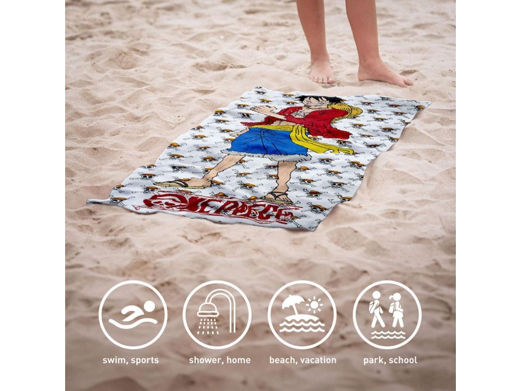 Atraktivní vícebarevný ručník - osuška s grafikou hlavní postavy z japonského seriálu One Piece. Ručník je vhodným dárkem pro každého fanouška.