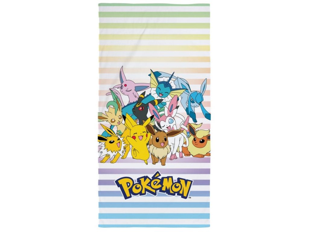 Bavlněná osuška vyvedená v motivu pokémonů, konkrétně Eevee a jejími evolucemi.