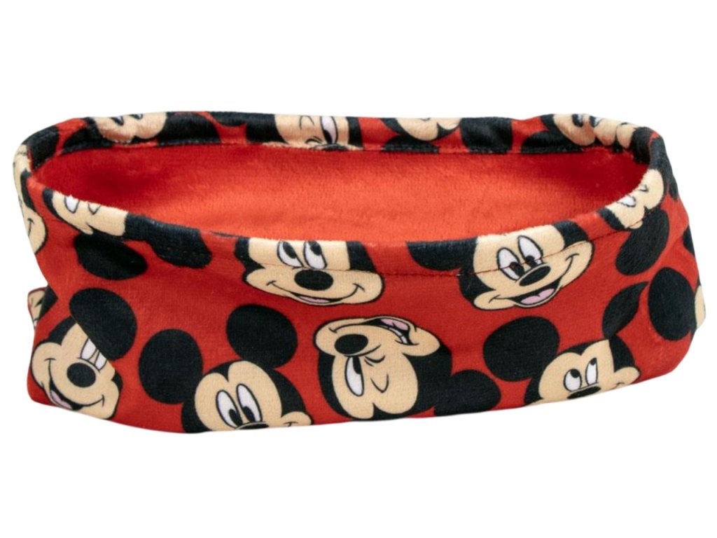 Multifunkční červený šátek na krk nebo hlavu s grafikou hlavy myšáka Mickeyho. Šátek je vhodný pro všechny fanoušky.