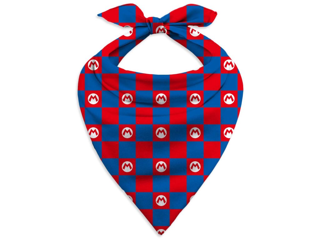 Oficiální šátek a doplňkové zboží z katalogu produktů s licencí počítačové hry Super Mario společnosti Nintendo.