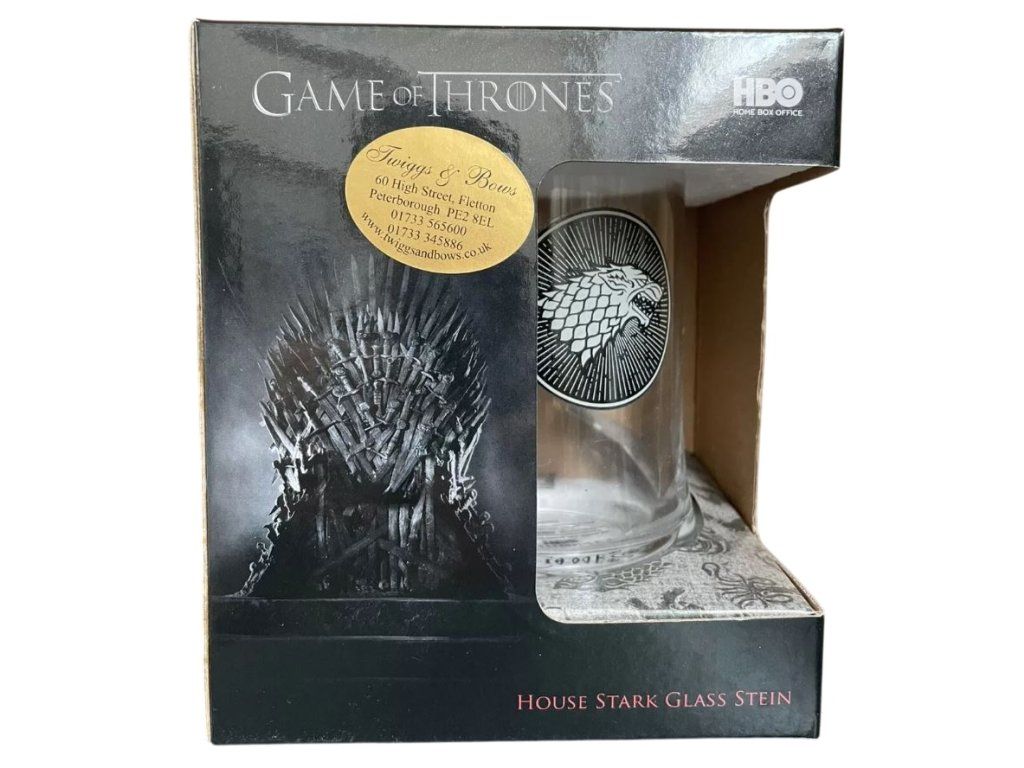 Skleněný čirý korbel se znakem rodu Starků ze seriálu Hra o trůny. Zabaleno v krabičce se stejným designem. Vhodné i jako dárek pro všechny fanoušky této oblíbeného dramatického seriálu.