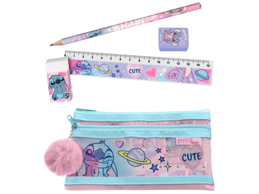 Set školních pomůcek s motivem roztomilého mimozemšťana Stitche z pohádky Lilo & Stitch. Tato sada nabízí vše, co děti potřebují pro zábavné psaní svých školních poznámek. Set je zabalen v praktickém pouzdře, které je ideální jak do školy, tak na doma. Ideální i jako drobný dárek pro všechny školáky milující postavičku Stitche.