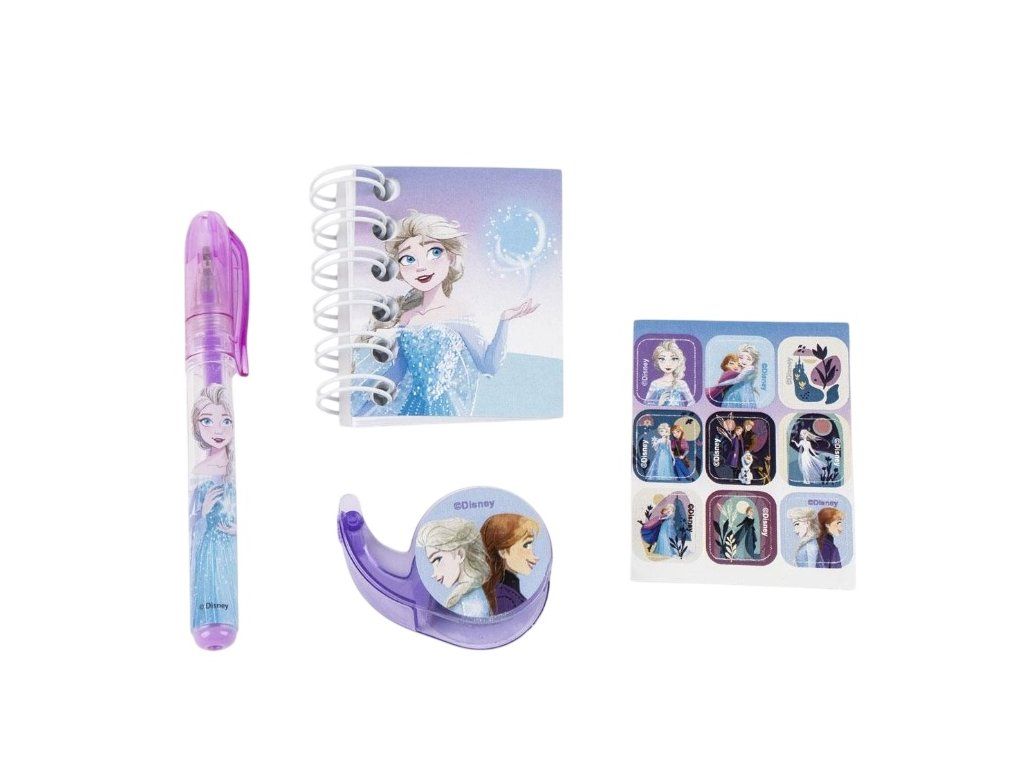 Oficiální produkt - set školních pomůcek z katalogu výrobků s grafikou a licencí populární pohádky Frozen (Ledové království) od společnosti Disney.