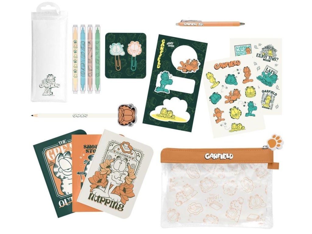 Set 7 školních potřeb s motivy a vzory oblíbeného líného kocoura Garfielda. Set je vhodný i jako dárek pro každého kreativního školáka.