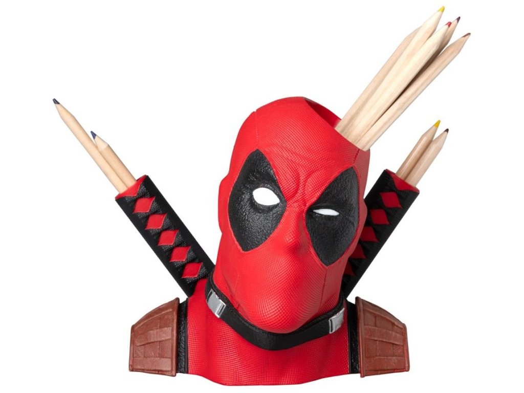 Oficiální produkt - stojánek na psací potřeby z katalogu výrobků s grafikou a licencí populárního superhrdiny jménem Deadpool od společnosti Marvel.
