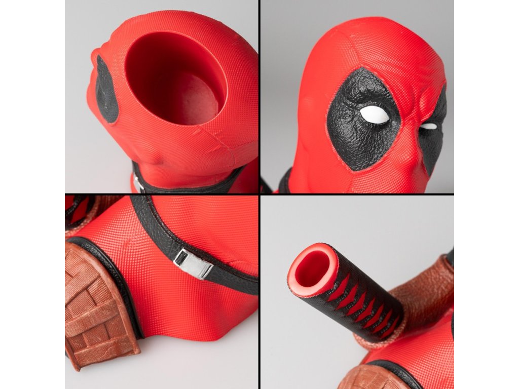 3D držák na pera a psací potřeby. Držák na pera vyvedený z postavy hrdiny Deadpoola je ručně malovaný a vyroben z pryskyřice a ABS plastu. Obsahuje tři různé přihrádky, kam si můžete uložit psací potřeby: jednu v horní části hlavy a další dvě v jílci katany. Stojánek pro všechny menší i větší fanoušky, kteří chtějí své propisky mít organizované ve stylu.