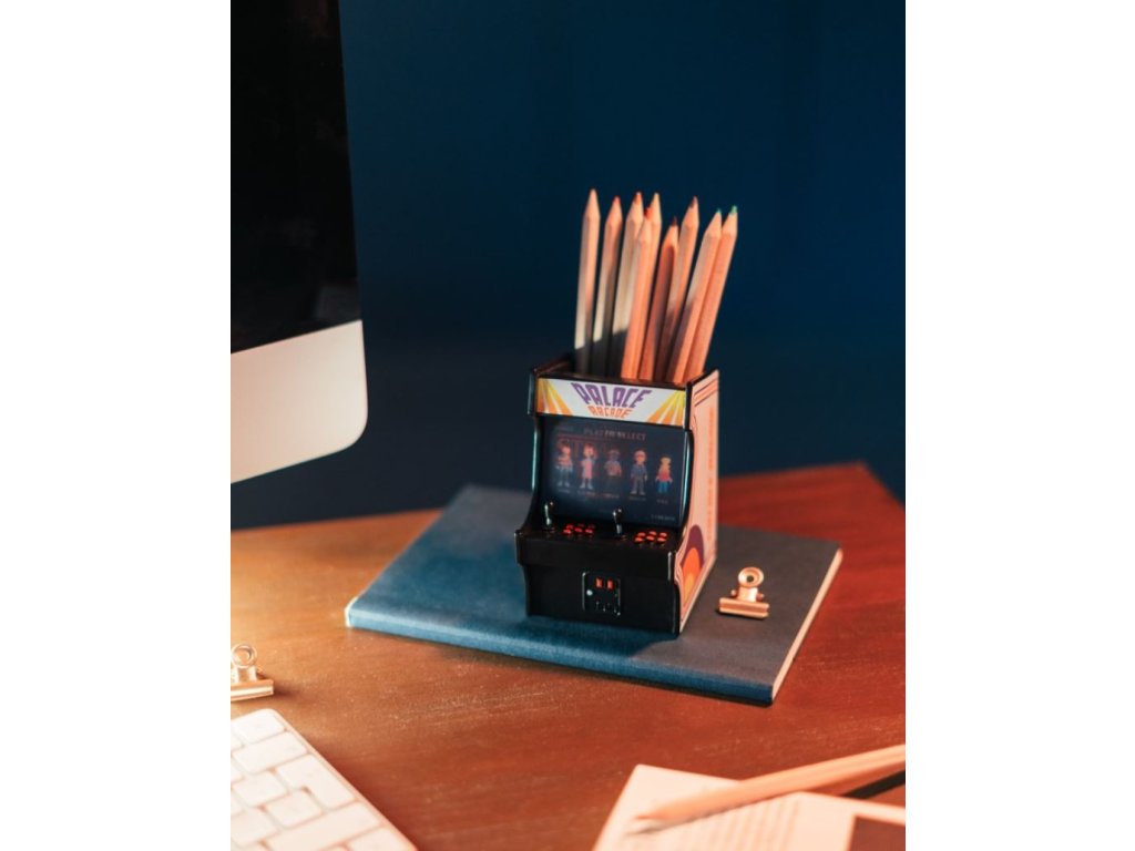 3D držák na pera a psací potřeby. Držák na pera vyvedený z hracího automatu s čočkovitou nálepkou, která připomíná obrazovku z arkádového automatu a simuluje videohru ze seriálu. Stojánek pro všechny menší i větší fanoušky, kteří chtějí své propisky mít organizované ve stylu Stranger Things.