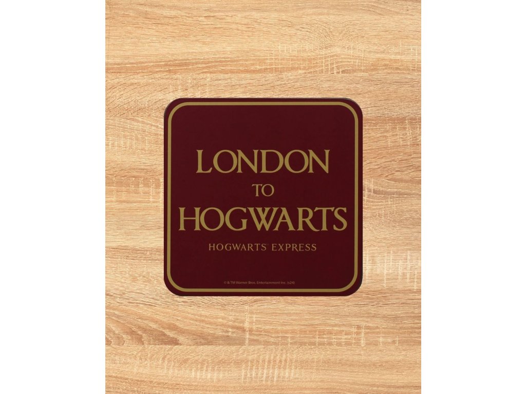 Korkový podtácek s motivem z kouzelnického světa Harryho Pottera potěší každého fanouška magie. Design inspirovaný nápisem London to Hogwarts dodá každému posezení originální atmosféru. Podtácek je vyroben z korku, který tvoří jeho spodní část a zajišťuje stabilitu i ochranu povrchu stolu. Horní vrstvu tvoří papír s motivem, který je upraven speciální povrchovou úpravou pro vyšší odolnost proti poškození a vlhkosti.