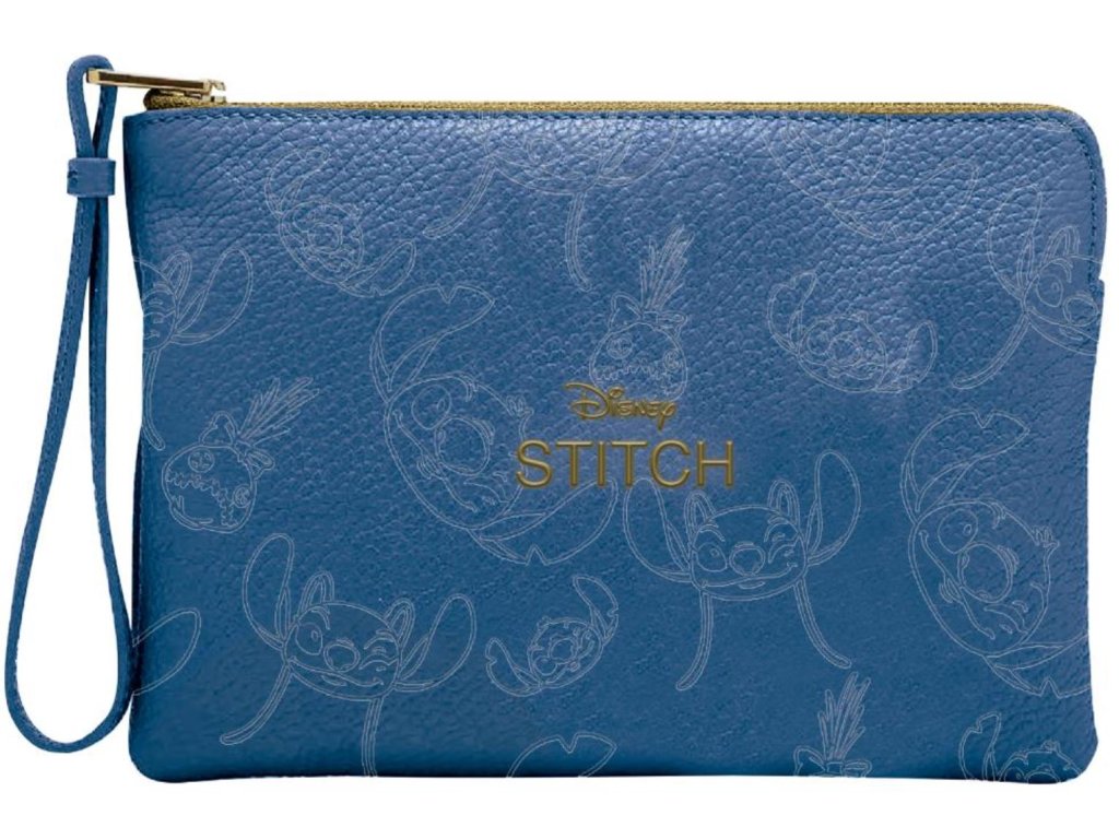 Stylová kosmetická taštička s motivem roztomilé postavičky Stitche potěší každého fanouška oblíbené pohádky Lilo & Stitch. Kvalitní modrý povrch dodává taštičce jemný a elegantní vzhled, zatímco výrazný zlatý nápis Stitch z ní dělá nepřehlédnutelný doplněk.Taštička nabízí jeden prostorný oddíl uzavíratelný na zip s praktickým poutkem na pohodlné přenášení. Je ideální na kosmetiku, drobnosti i každodenní nezbytnosti - skvěle se hodí do kabelky, batohu i na cesty.