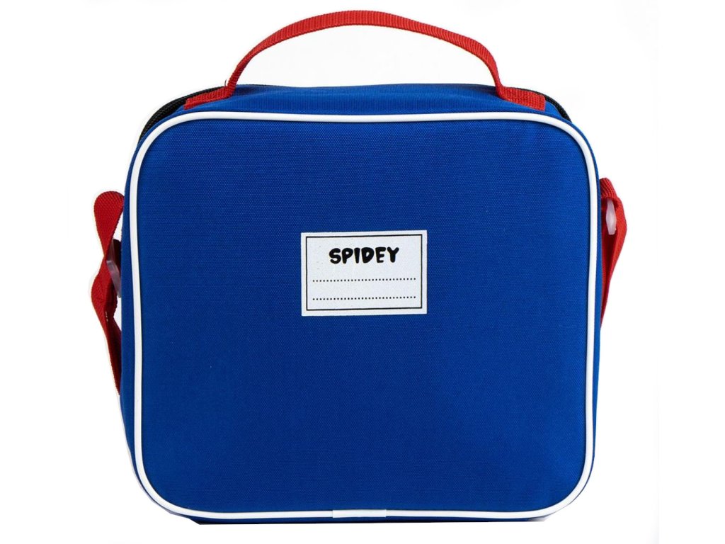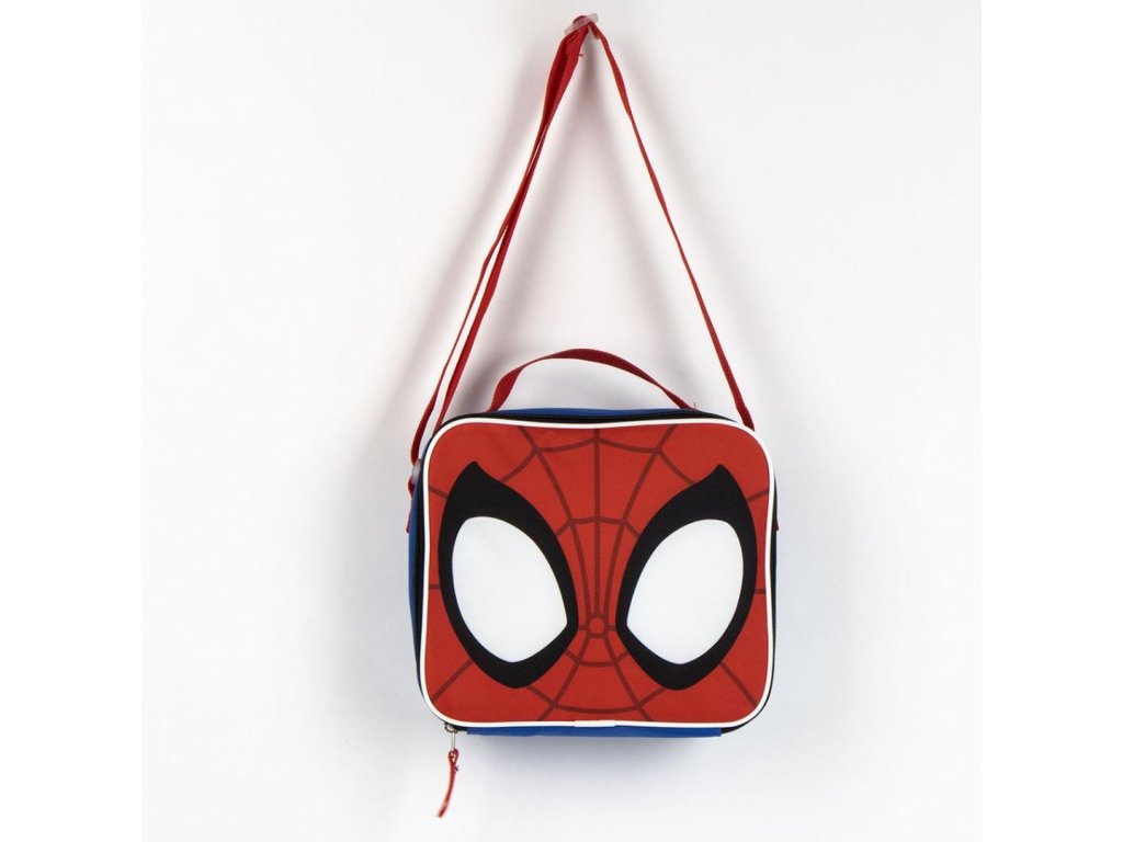 Modrá taška na svačinu s červenými detaily masky Spider-mana. Taška má navíc i nastavitelný ramenní popruh a rukojeť pro nošení v ruce. Snadno čistitelná, protože vnější tkanina je vyrobena z vysoce kvalitního potaženého materiálu, který se snadno udržuje.