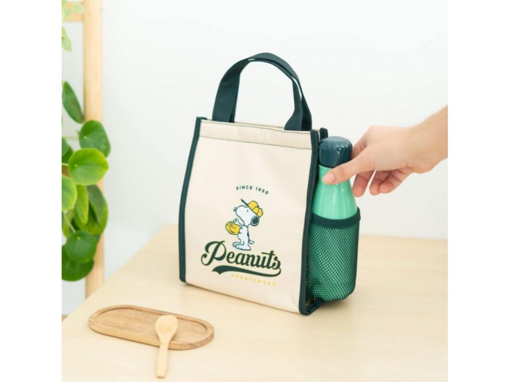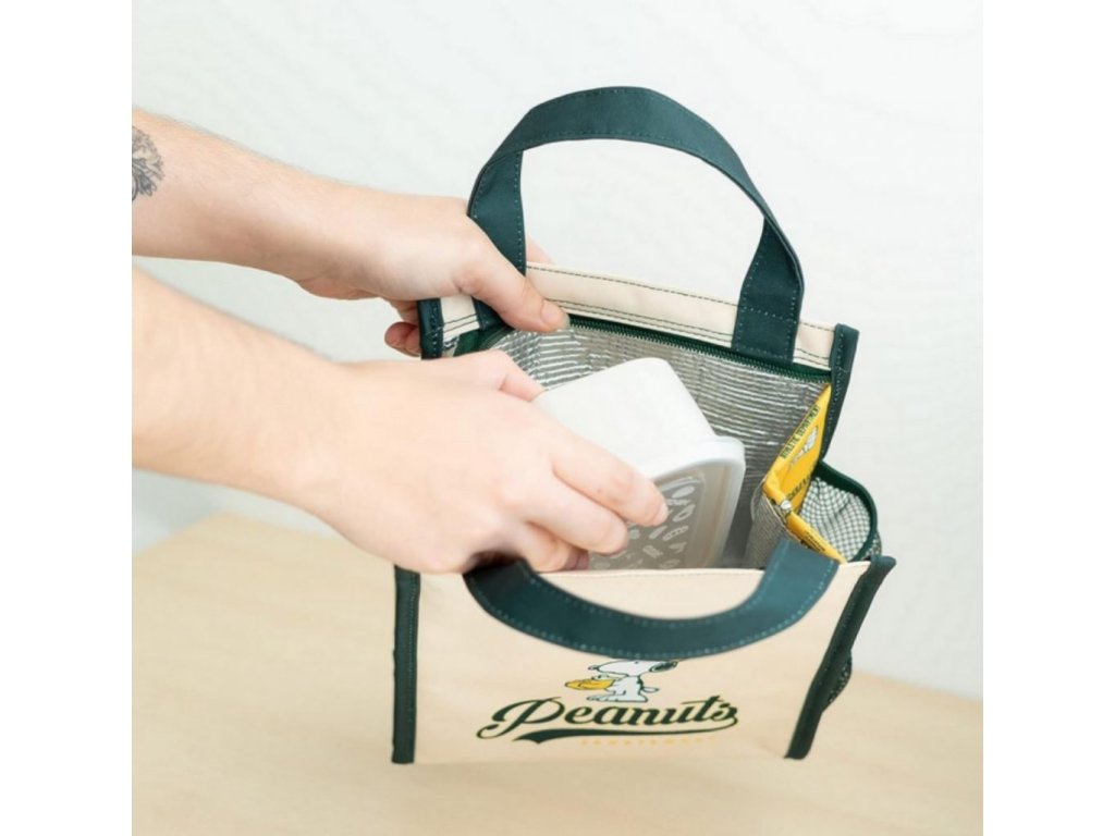 Jednoprostorová béžová taška na svačinu s motivem oblíbeného psa Snoopyho. Taška má izolovanou hliníkovou podšívku pro uchovávání čerstvosti potravin a boční síťku na láhev. Disponuje zapínáním na zip a uchy pro snadné nošení v ruce. S touto taškou na svačinu nebudete mít nikdy hlad, protože budete mít svou čerstvou svačinku vždy po ruce.