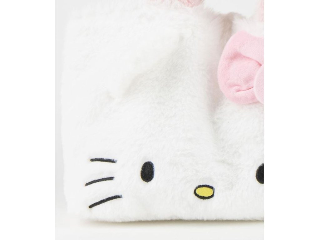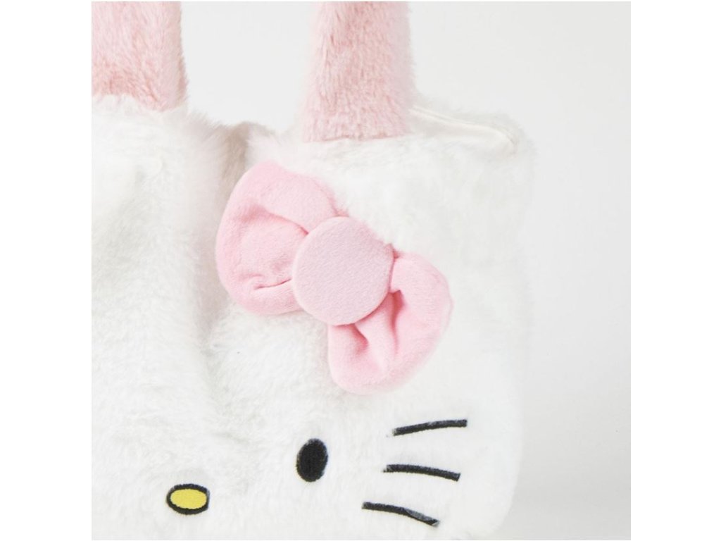 Atraktivní bílá plyšová shopping taška na rameno s růžovými plyšovými popruhy s 3D potiskem populární kočičky Hello Kitty. Taška je uzaviratelná zipem a je vhodná nejen na nákupy,ale i do města, protože je skvělým módním doplňkem.