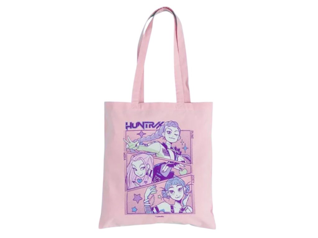 Oficiální produkt - shopping taška a doplňkové zboží z katalogu výrobků s logem, fotografiemi a grafikou fantasy filmu K-Pop Demon Hunters (Lovkyně démonů) od streamovací společnosti Netflix.