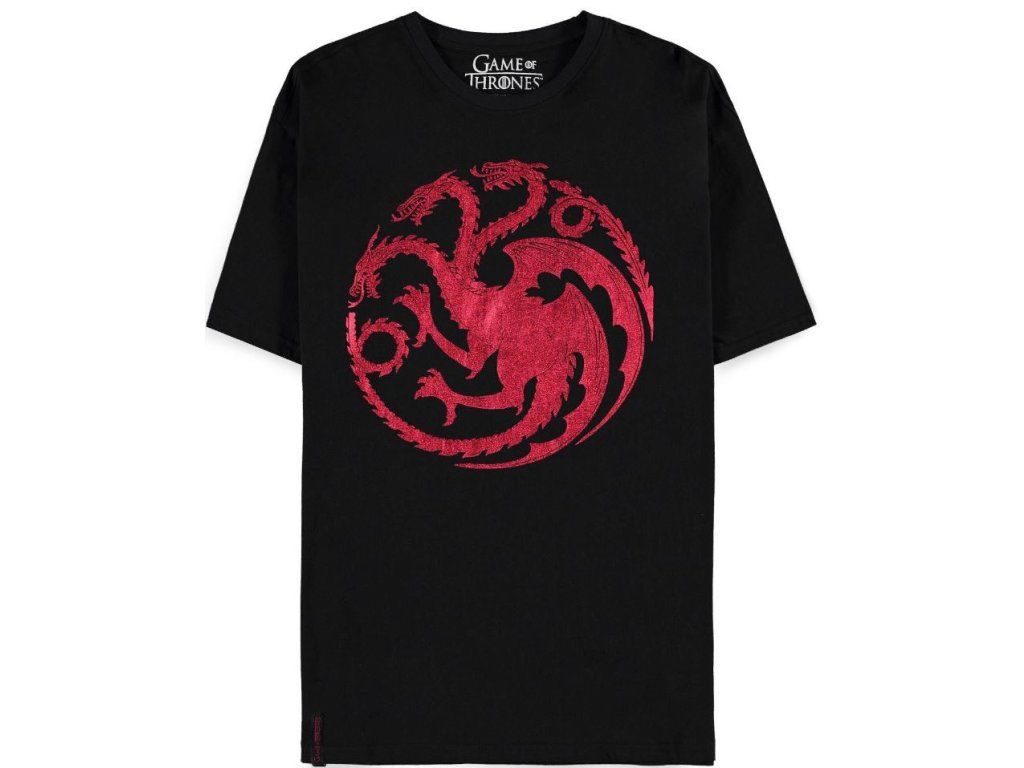 Atraktivní černé tričko s grafikou červeného Dragon Loga (Znakem Draka) ze seriálu House of the Dragon.
