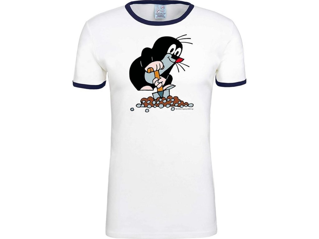 Bavlněné bílé tričko s grafikou Krtečka s rýčem na kopečku. Tričko vhodným dárkem pro všechny menší i větší fanoušky, kteří chtějí mít Krtečka stále u sebe.