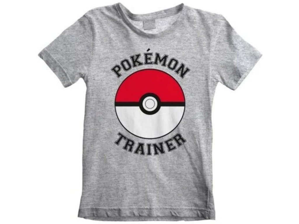 Atraktivní šedé dětské tričko s logem pokéballu a nápisem ,,Pokémon trainer´´.