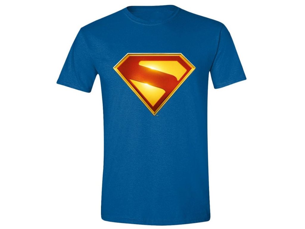 Modré pánské tričko s krátkým rukávem s grafikou loga superhrdiny Supermana, Tričko je vhodným dárkem například ke dni otců, kdy chcete ukázat, že pro vás je největší superhrdina váš táta.