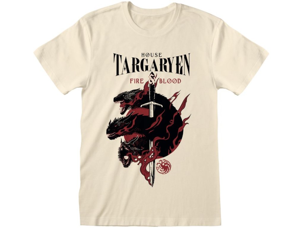 Béžové pánské tričko s potiskem hlav tří draků, probodnutých mečem, což je znak rodu Targaryenů. Tričko je vhodné pro všechny fanoušky seriálu Game of Thrones.