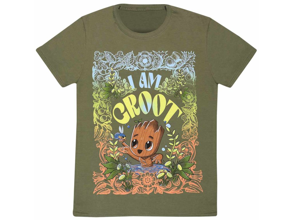 Atraktivní zelené tričko s grafikou květinového stylu a postavy Groota ze sedmdesátých let. S tímto tričkem s miláčkem Grootem a jeho slavnou větou: ,,I am Groot" z filmové ságy Strážci Galaxie si vychutná svůj oblíbený film každý fanoušek.