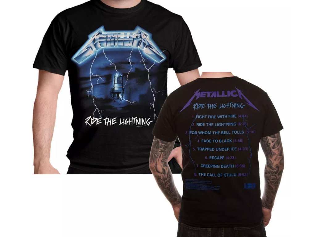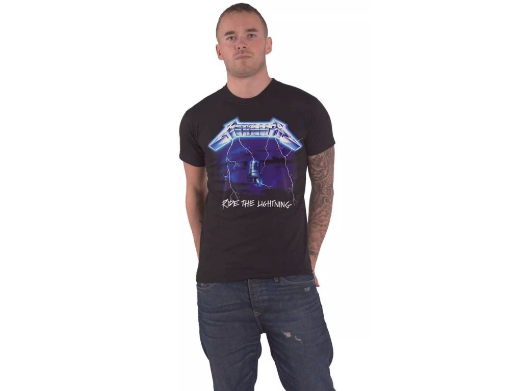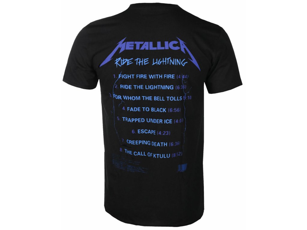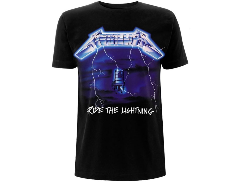 Atraktivní černé tričko s grafickým potiskem druhého studiového alba Ride the Lightning od thrash metalové skupiny Metallica.